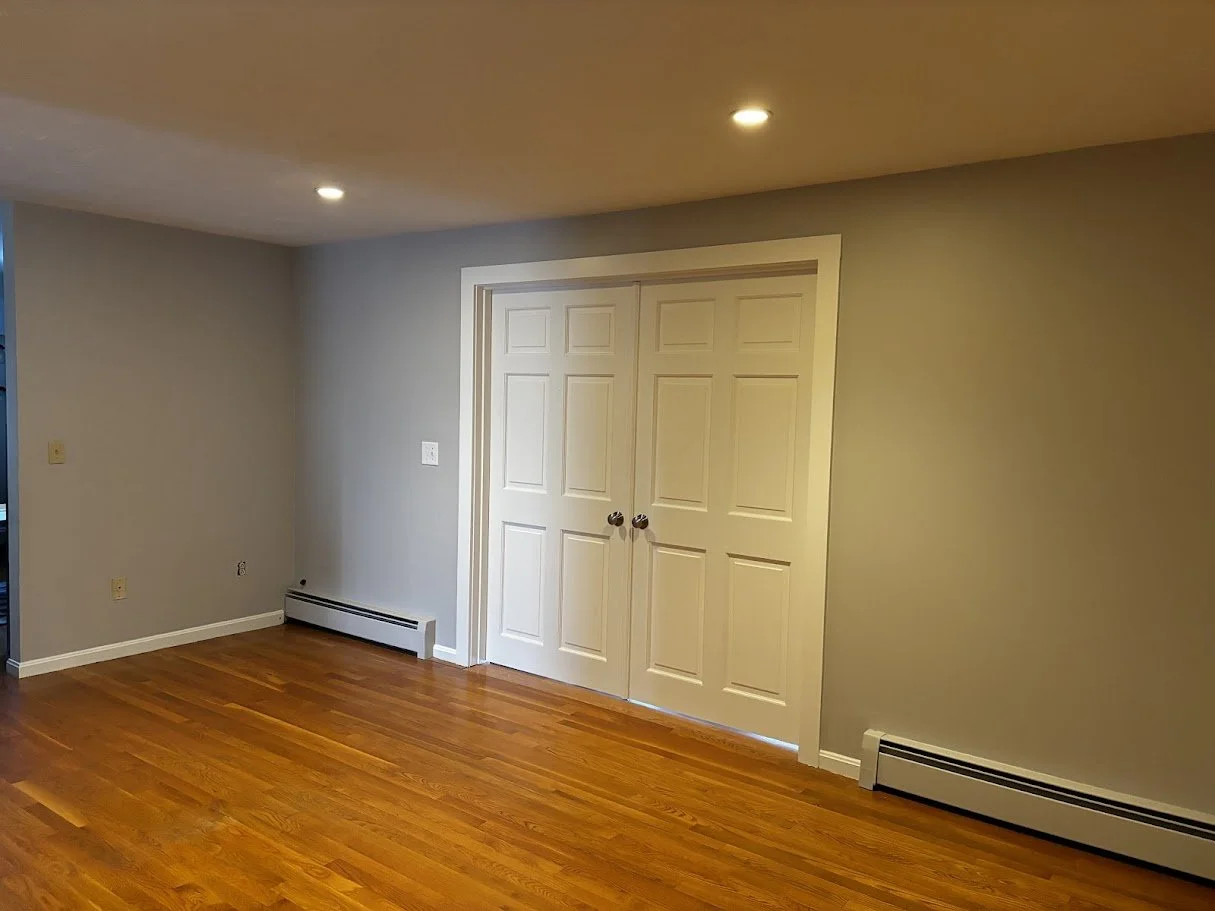 This beautiful project covered three walls and accommodated their existing heating registers and electrical outlets.